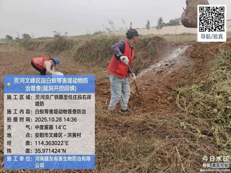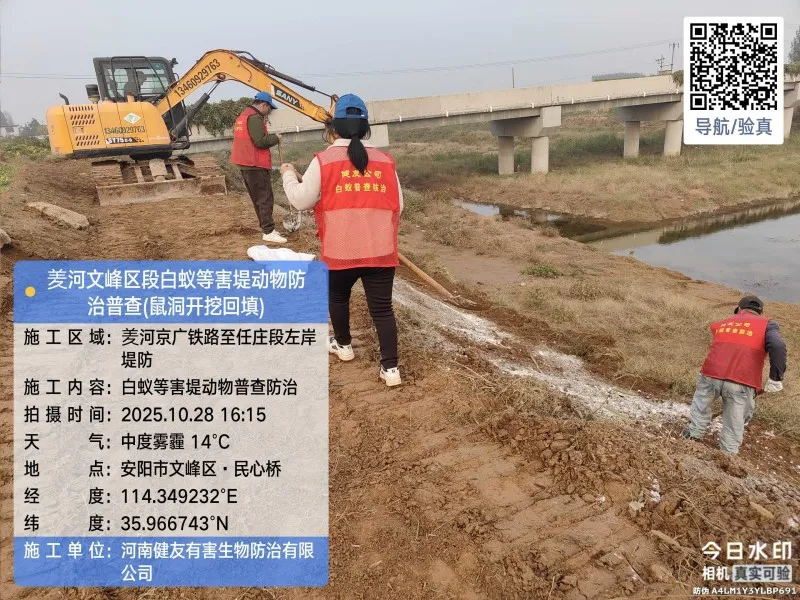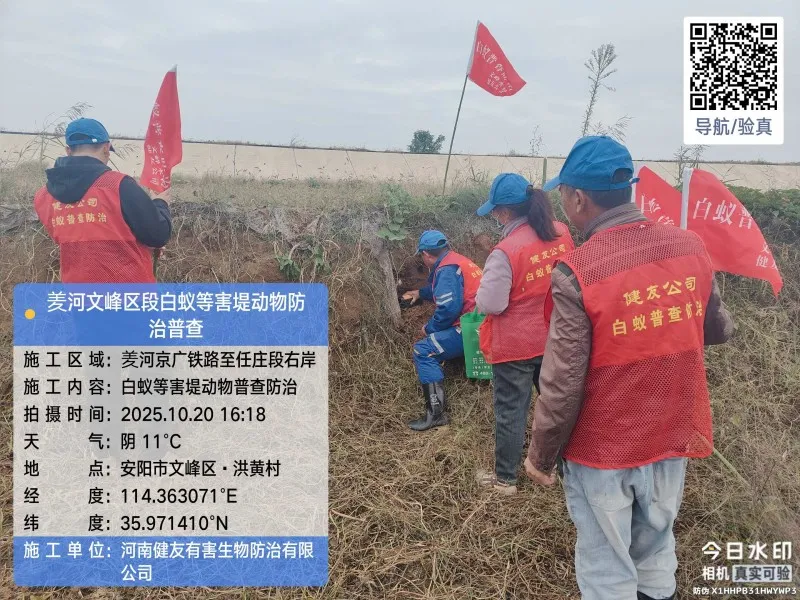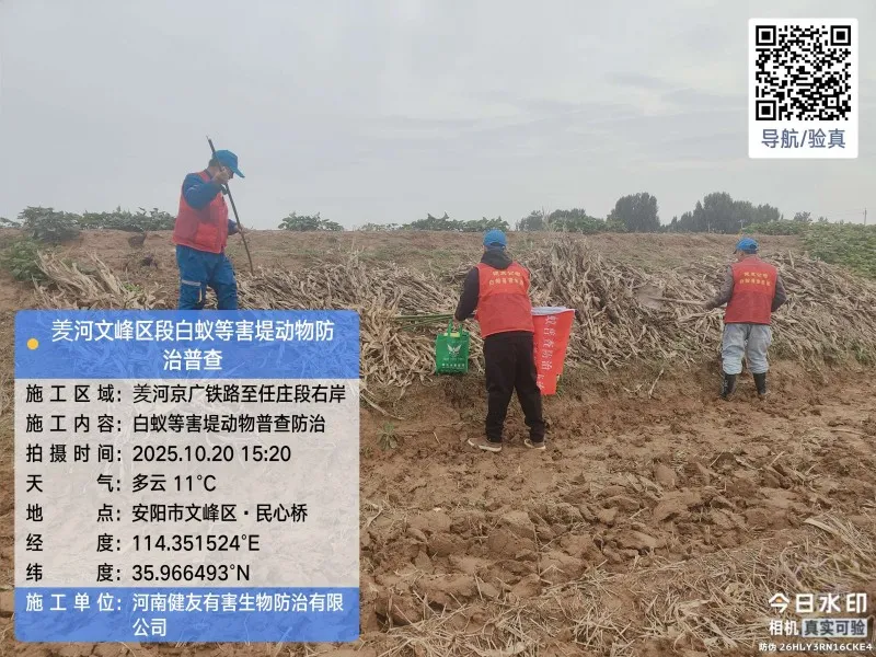 • 2025年10月,安阳市文峰区水利局水利工程(羑河)堤防工程白蚁等害堤动物普查防治